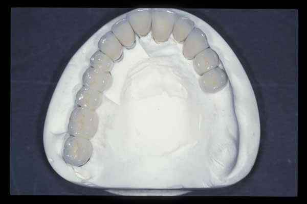 The treatment was to give her posterior stability with implants and give her overbite and overjet so that she had good anterior guidance and if and when she bruxes , she bruxes with the correct class 3 leverage leading to less stress in the masticatory apparatus. The case was done using the Cadiax and fully adjustable articulator.